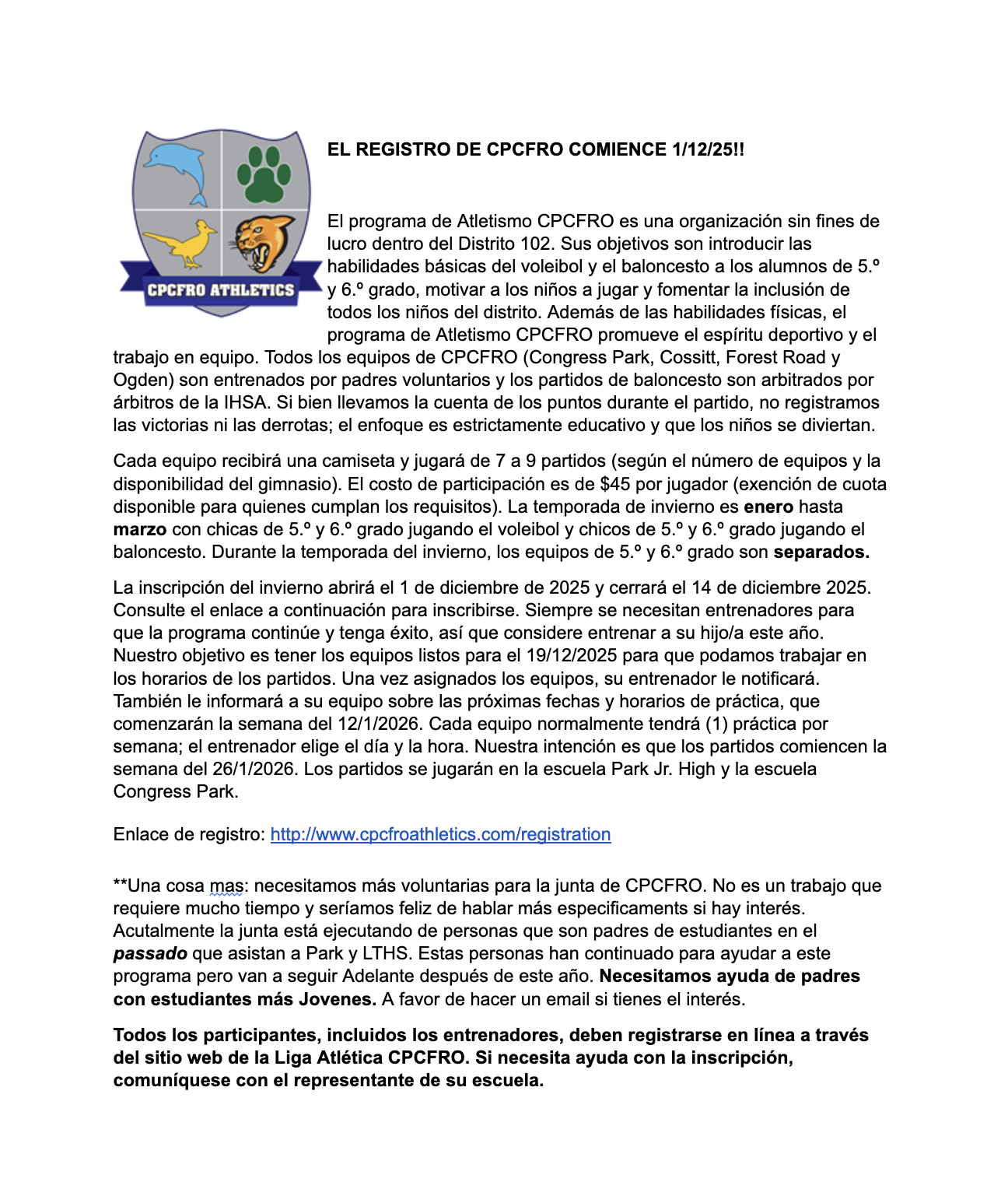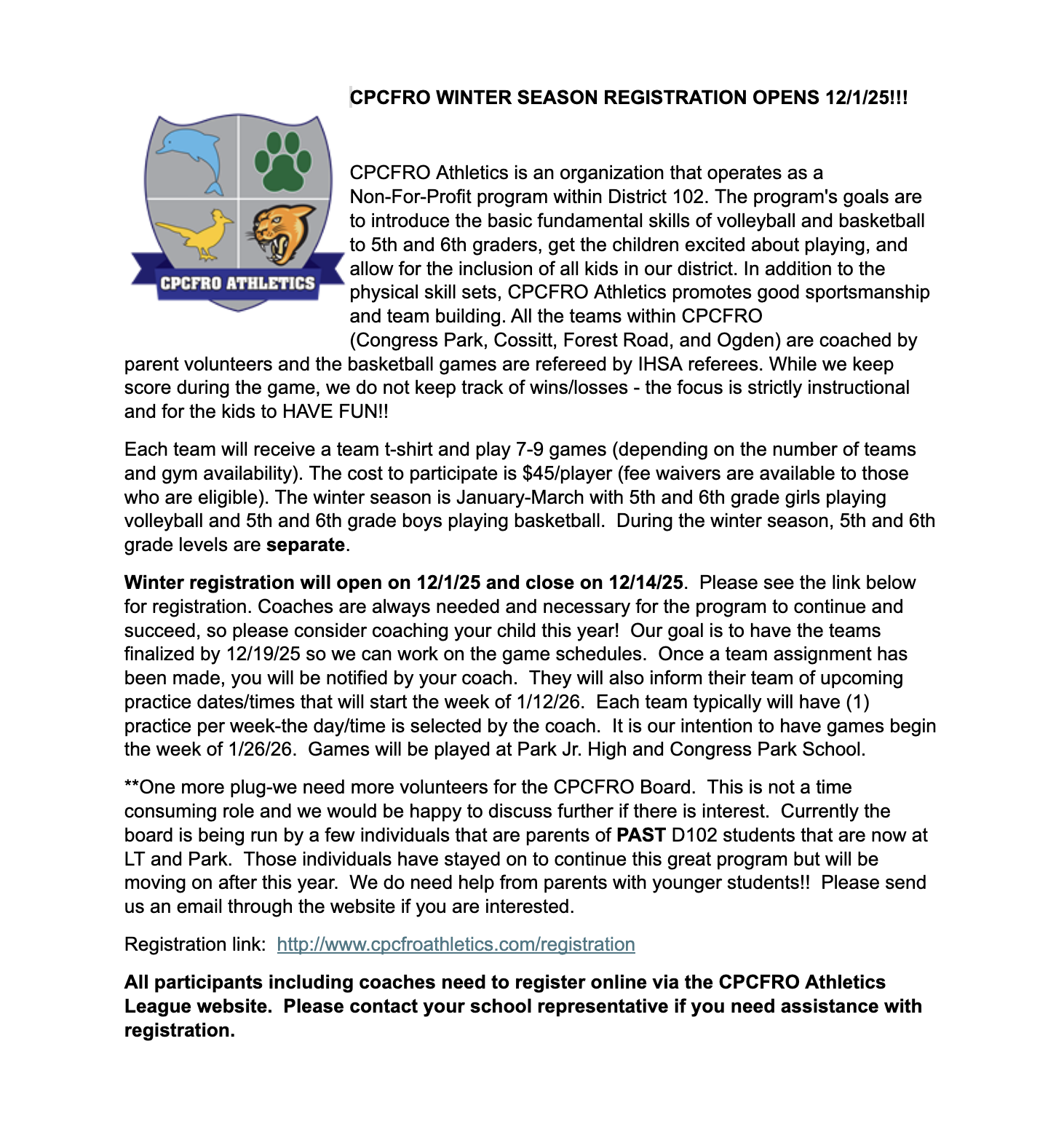 Where: Forest Road School Gym | 901 N Forest Road, LaGrange Park