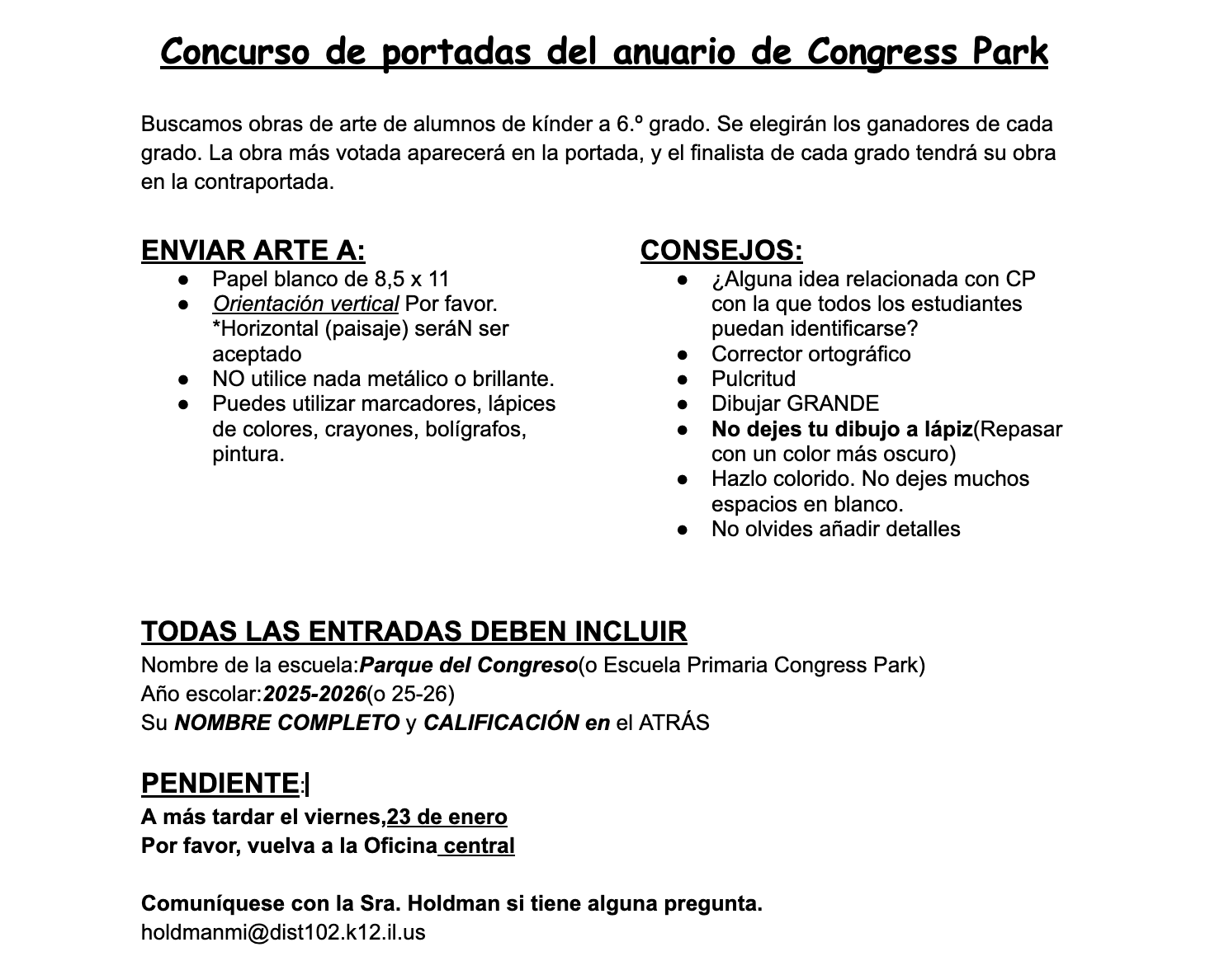 Email Mrs. V, vaiciuliske@dist102.k12.il.us or Ms. K, kokoskaka@dist102.k12.il.us